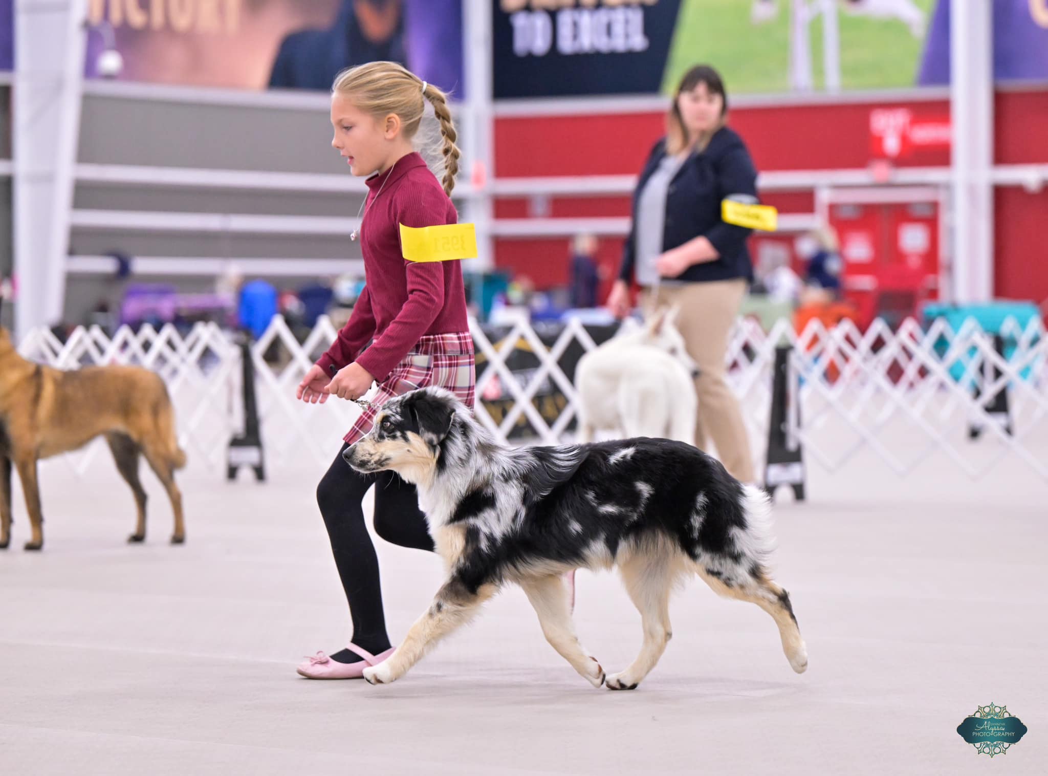 Harper & Kicks entered their first show together at the Autumn Seiger IABCA show Nov 2023. Kicks was 6 months old and entered in her first show ever! They took home BOB Puppy every show, receiving top marks. Herding Group Puppy 1, 2x Herding Group Puppy 3. Best in Show Junior Handler. Earning Kicks’ National Junior Puppy Champion, International Junior Puppy Champion and Honors Junior Champion (NatJR IntJR and HnrJR).