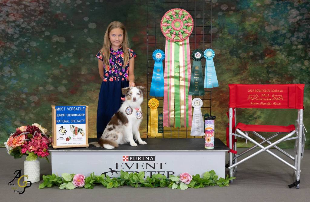 Harper competes in the 2024 MASCUSA National Specialty with Harbor and wins her age category for both Most Versatile and Ultimate Performance. They compete in herding, agility, rally, disc, FAST CAT and conformation evaluation.