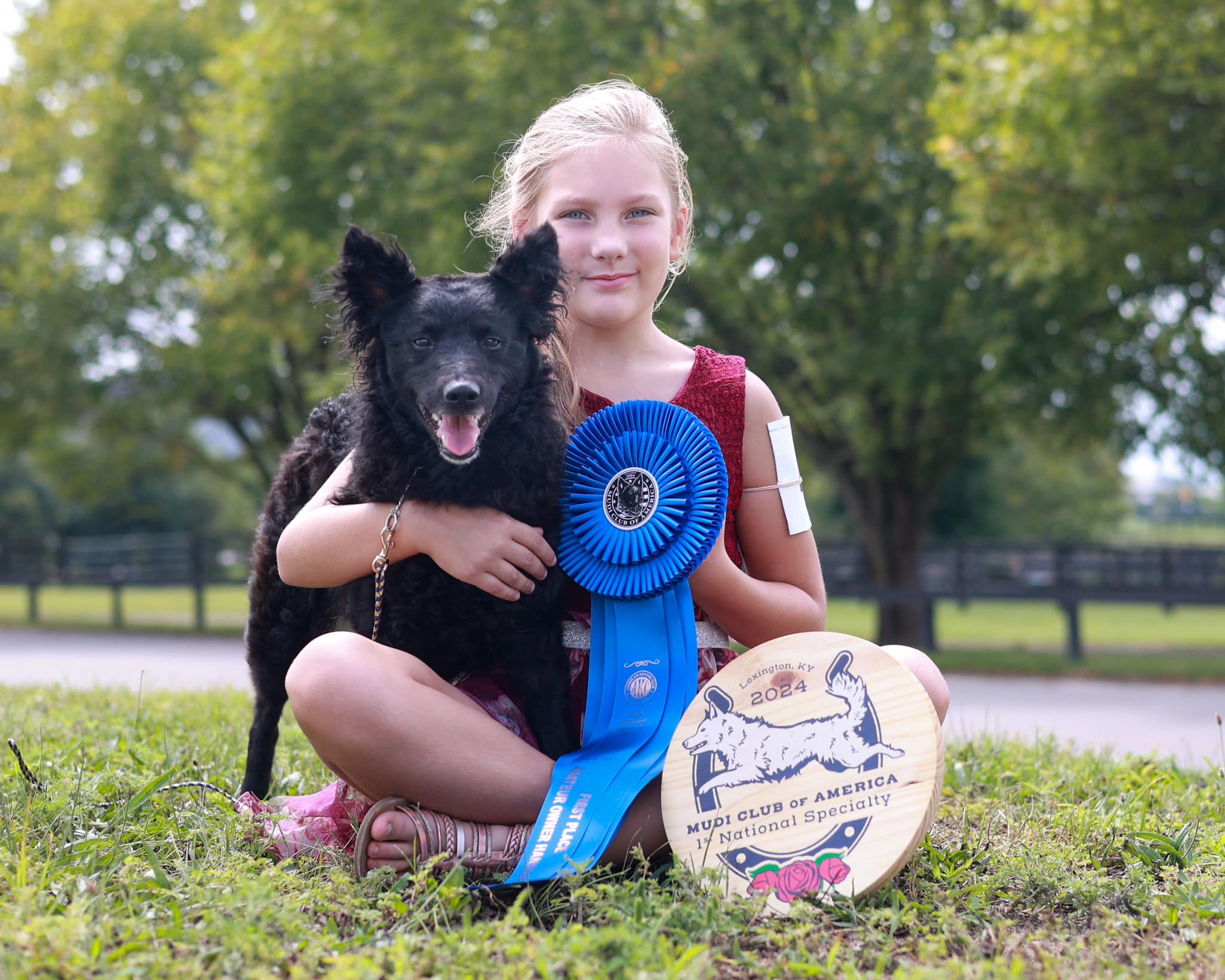 Harper & Crash compete in the 2024 MCA National Specialty in the Junior Handler Mudi Versatility Award. They qualify and place 2nd. Competing in Dock Diving, FAST CAT, Hide N Seek (Scentwork) and Junior Showmanship.