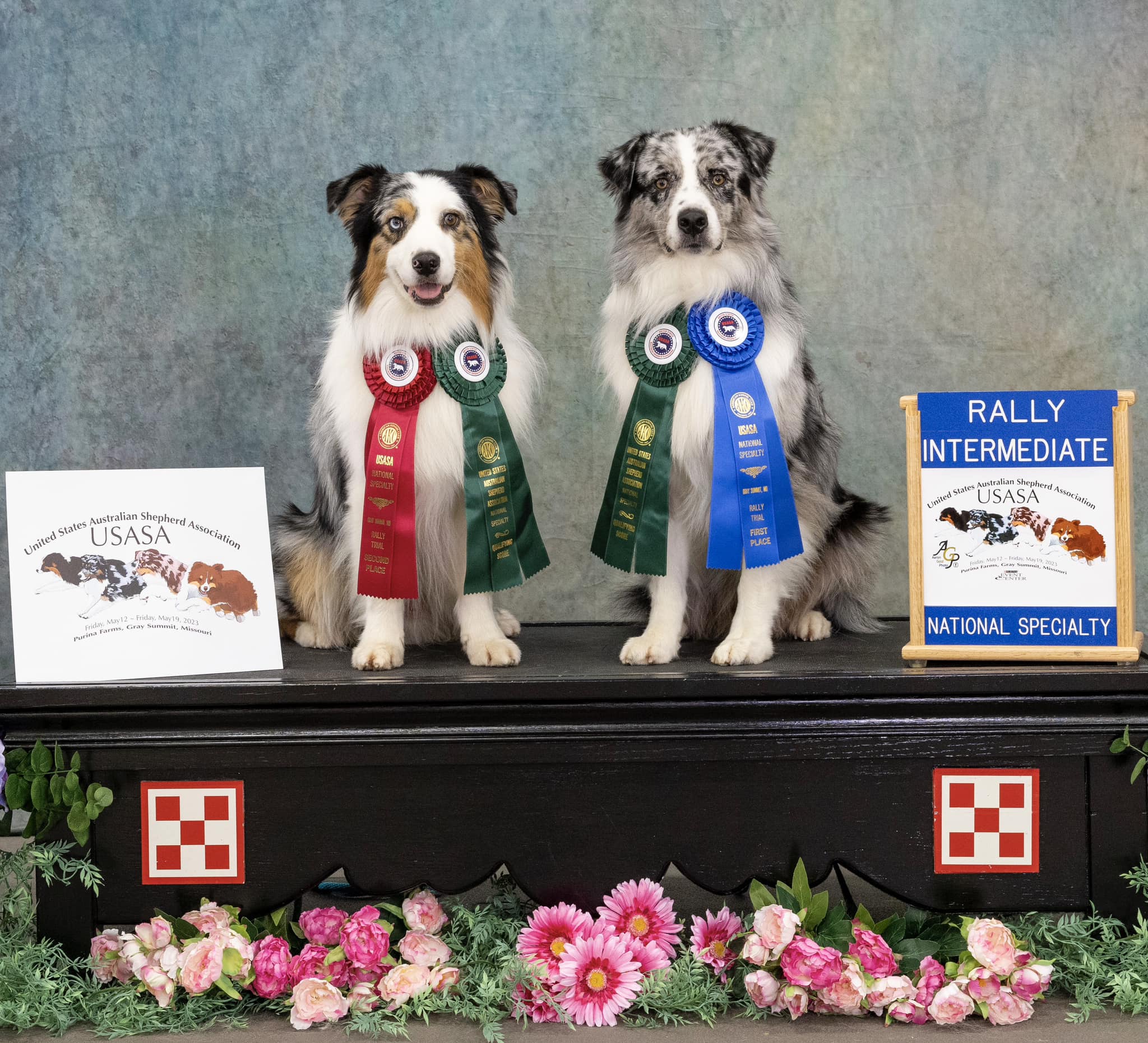 USASA 2023: Qualifying scores in Beginner Novice with a 1st and 2nd place. Rally Intermediate Qualifying scores, a perfect 100, a 1st and a 2nd place. 2nd in Am Owner Handler.