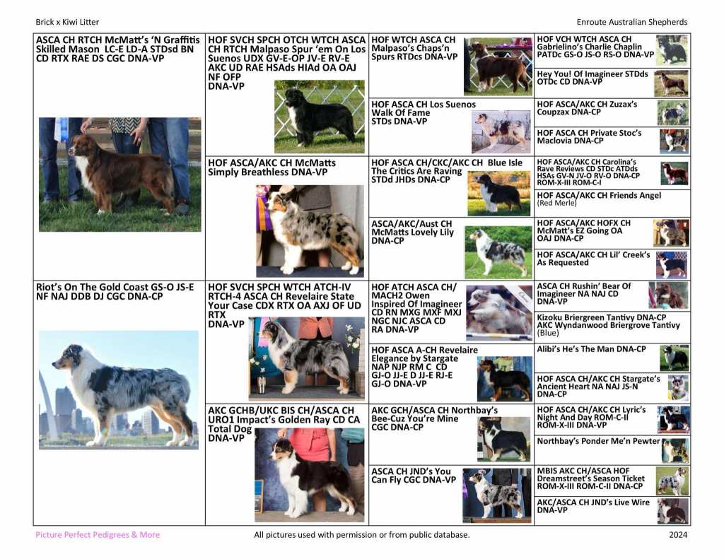 Our Rockstar! This dog is everything we wanted from our Brick x Kiwi cross. Koozie took a 5 month vacation to California where he received an amazing puppy raising with Trilogy Australian Shepherds. Koozie is calm and collected with drive to boot! He is a solid boy with beautiful movements. We see a beautiful combination of his sire and dam with hints of his jam packed pedigree sprinkled in!