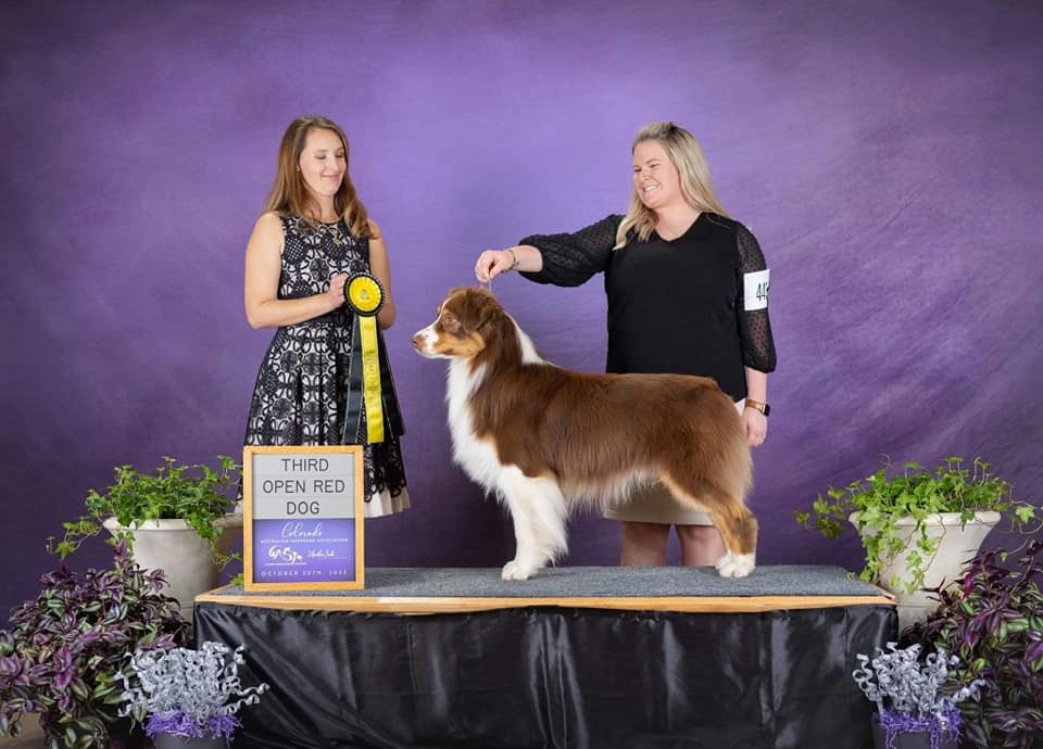 Harper’s first official co-own. Gratefully co-owned with Mari Jebens of Blue Moon Australian Shepherds and his breeders at Antebellum Australian Shepherds. He came to us finished in AKC and major pointed in ASCA. Harper is working on his AKC GCH and ASCA CH. We couldn’t ask for a better dog for her. Harper & T have multiple OH Group Placements, OH Herding Group Win, and are chipping away at his GCH.